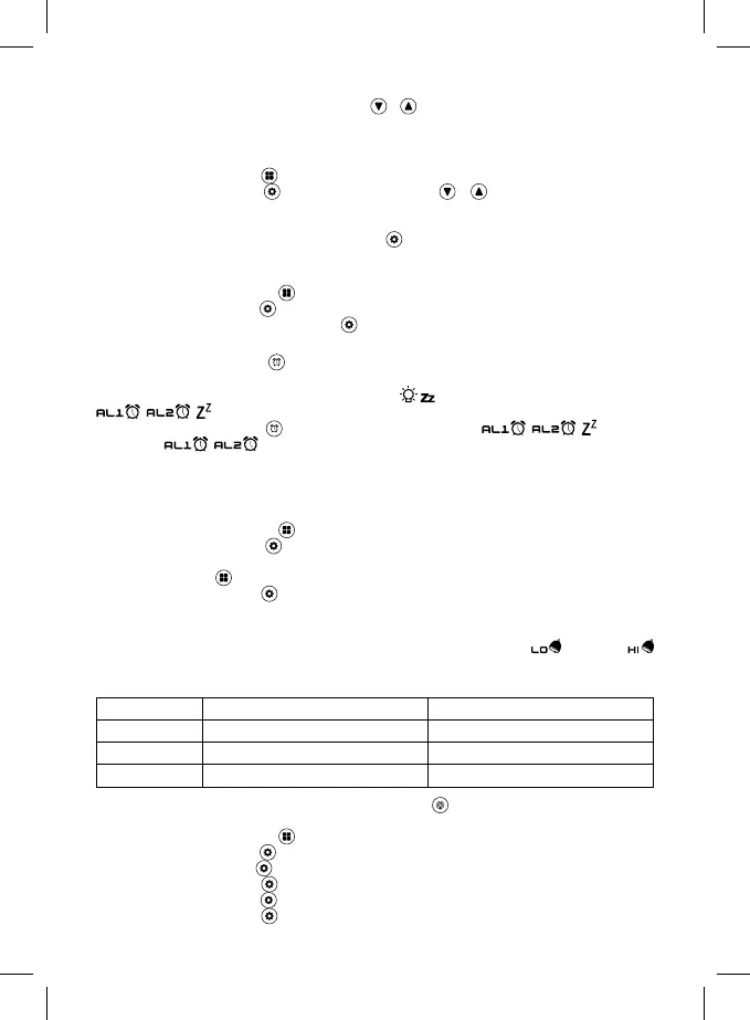 Postupným stlačením tlačítka aktivujte budík 1 (AL1); budík 2 (AL2); nebo oba budíky současně