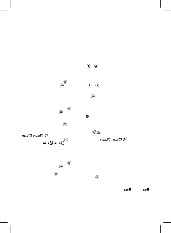 S postopnim pritiskom na tipko aktivirate budilko 1 (AL1); budilko 2 (AL2); ali obe budilki hkrati