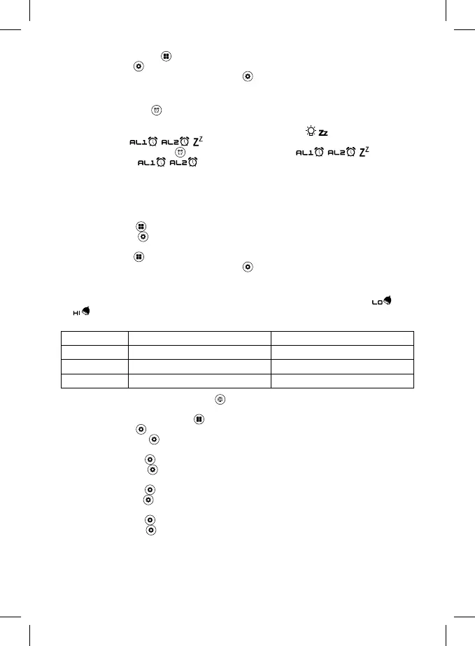 Atkārtoti nospiežot pogu , tiek aktivizēts modinātājs (AL1); modinātājs (AL2); vai abi modinātāji