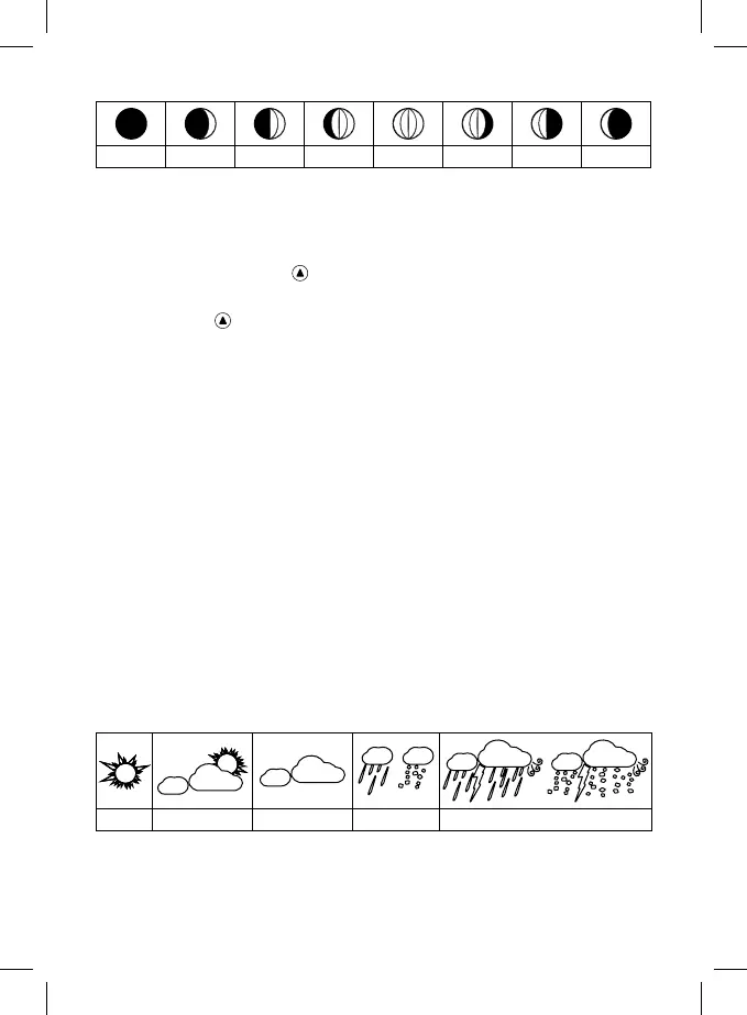 1 – Новолуние; 2 – Млада луна; 3 – Първа четвърт; 4 – Нарастваща луна; 5 – Пълнолуние; 6 – На-
