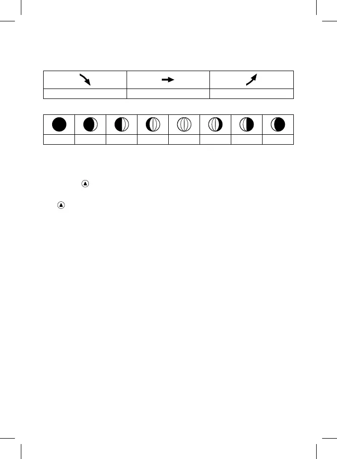 1 – Luna nueva; 2 – Luna menguante; 3 – Cuarto menguante; 4 – Luna gibosa menguante; 5 – Luna