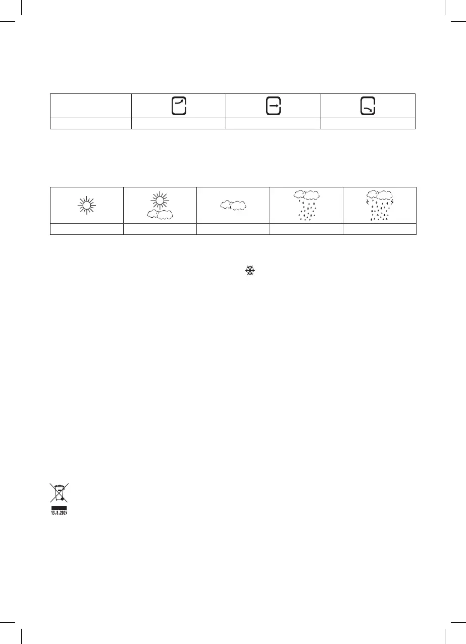 nastavljanju ali po ponastavitvi vremenske postaje, traja približno 12 ur preden začne meteorološka postaja pravilno napove-