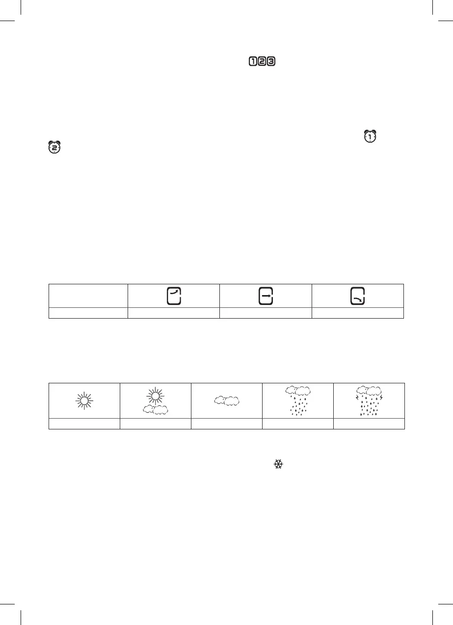 кнопку (крім SNZ) на задній стороні метеостанції - іконка перестане мигати і залишається на дисплеї. Будильник знову буде