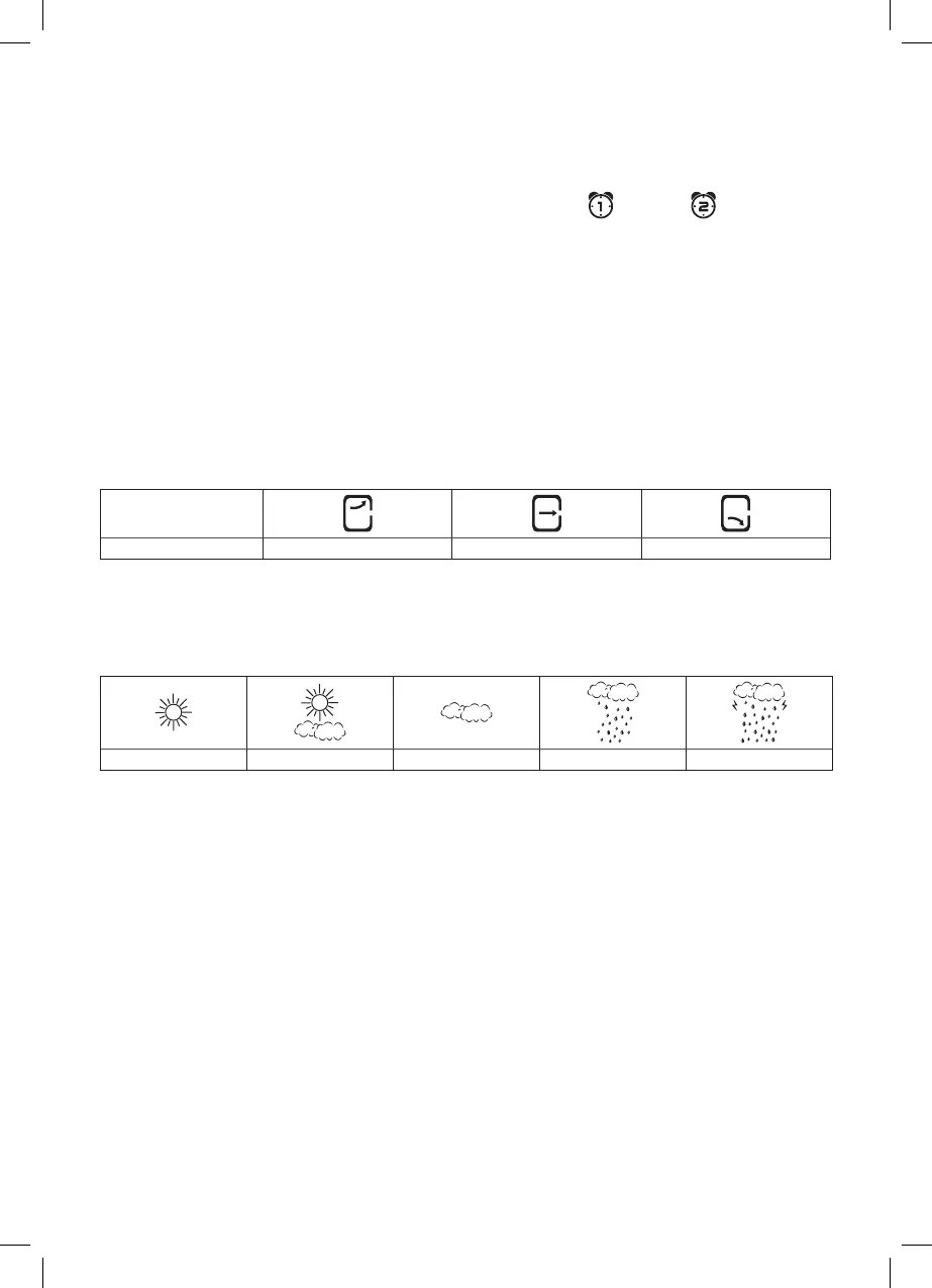 Staţia meteo permite reglarea a 2 alarme. Cu butonul MODE selectați alarma nr.1 (A1 ) sau nr. 2 (A2 ). Prin apăsare lungă