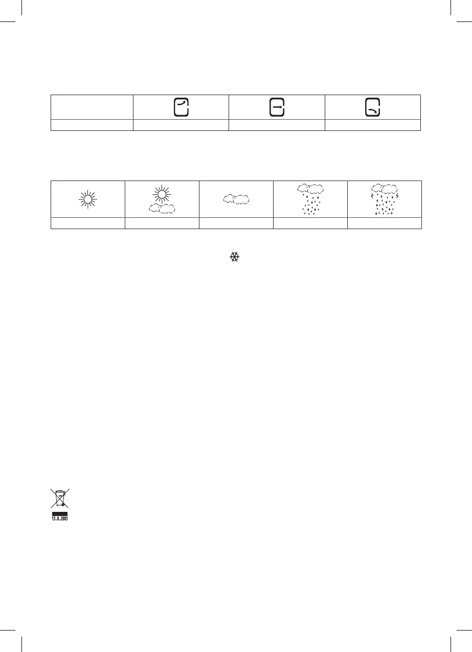 turi praeiti apie 12 valandų, kad stotelė pradėtų prognozuoti teisingai. Meteorologinė stotelė rodo 5 orų prognozės piktogramas.