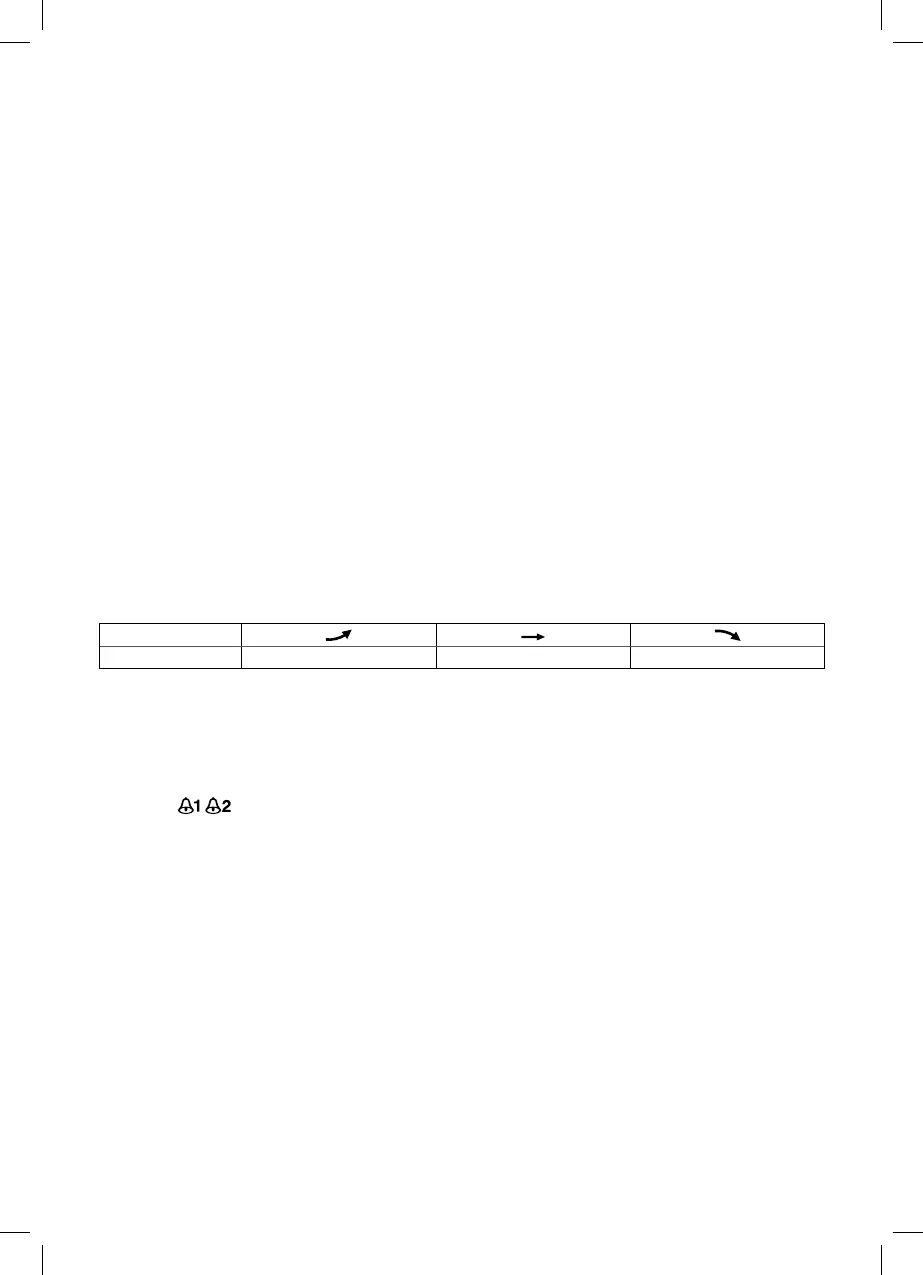 Laikant paspaudus mygtukus UP/DOWN (aukštyn/žemyn) vertes galima reguliuoti greičiau.