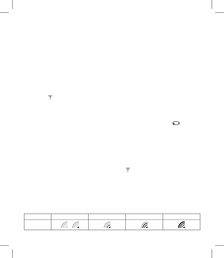 DCF77 w czasie 5 minut, miga następująca ikona w zależności od poziomu sygnału DCF.