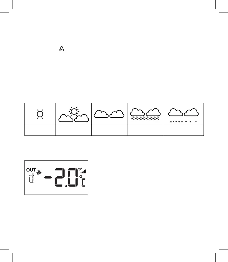 Ha a mért kültéri hőmérséklet a -2 °C és +3 °C közötti tartományba esik, hópehely szimbólum látható a kijelzőn.