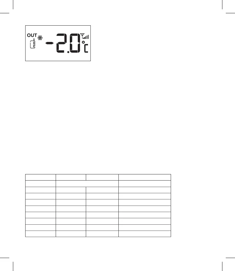 OUTDOOR TEMP, muutub ekraani värv sõltuvalt välistemperatuurist.Seda režiimi saab kasutada iga üksiku anduri jaoks.