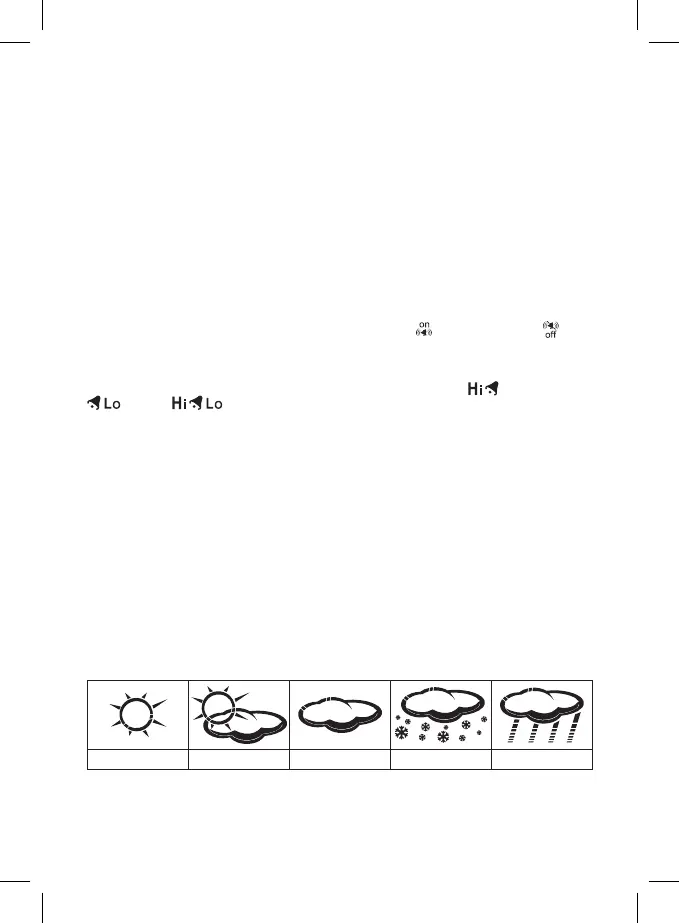 Opakovaným stiskem tlačítka UP/DOWN aktivujete alarm srážek
