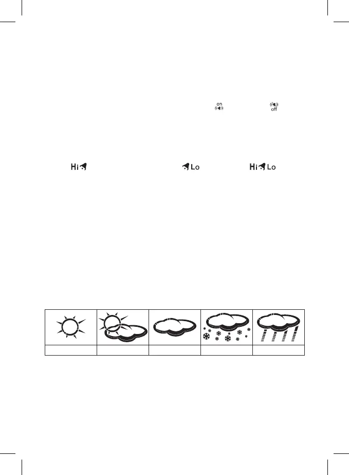 Ilgai palaikykite nuspaustą mygtuką ALERT (įspėjimas); lietaus įspėjimo nustatymas ims mirksėti.