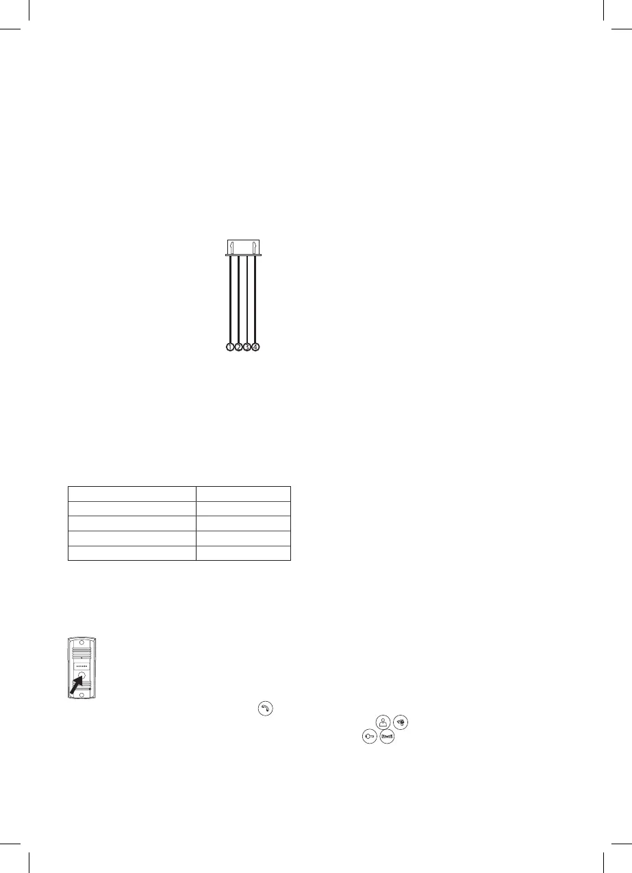 Skozi montažno odprtino povlecite montažni kabel in ga priključitev lestenčno sponko na zadnji strani vratne postaje kamere.