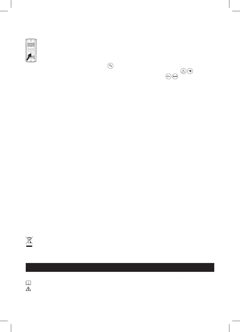 Lai zvanītu zvans un videotālrunī tiktu parādīts attēls no durvju kameras, nospiediet durvju kameras pogu. Uz monitoru tiks