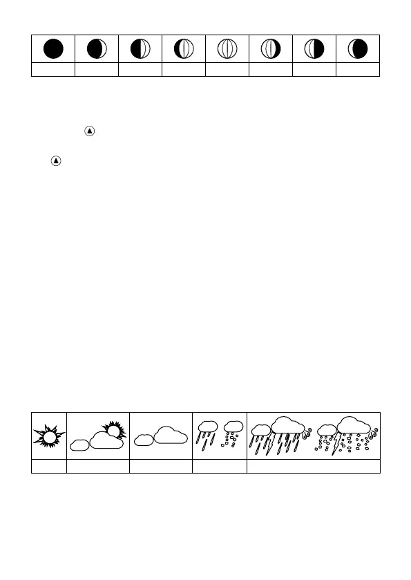 1 – Luna nueva; 2 – Luna menguante; 3 – Cuarto menguante; 4 – Luna gibosa menguante; 5 – Luna