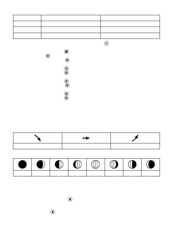 6 – Gibbosa calante; 7 – Ultimo quarto; 8 – Luna calante