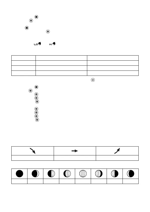 1 – Nymåne; 2 – Voksende halvmåne; 3 – Første kvartal; 4 – Voksende; 5 – Fullmåne; 6 – Avtagende;