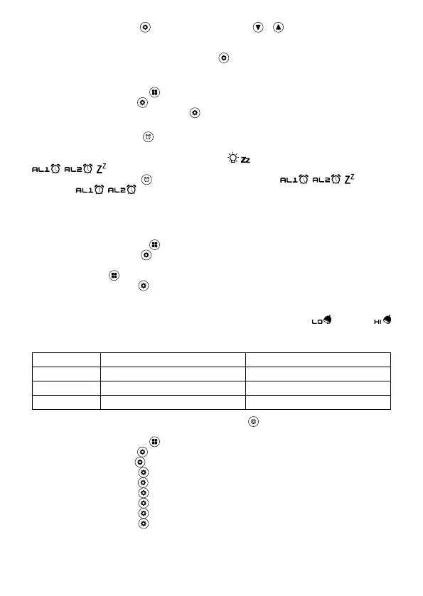 Postupným stlačením tlačítka aktivujte budík 1 (AL1); budík 2 (AL2); nebo oba budíky současně