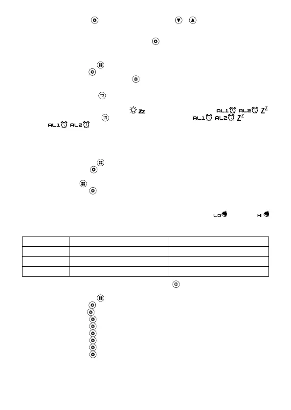 Postupným stlačením tlačidla aktivujte budík 1 (AL1); budík 2 (AL2); alebo oba budíky súčasne
