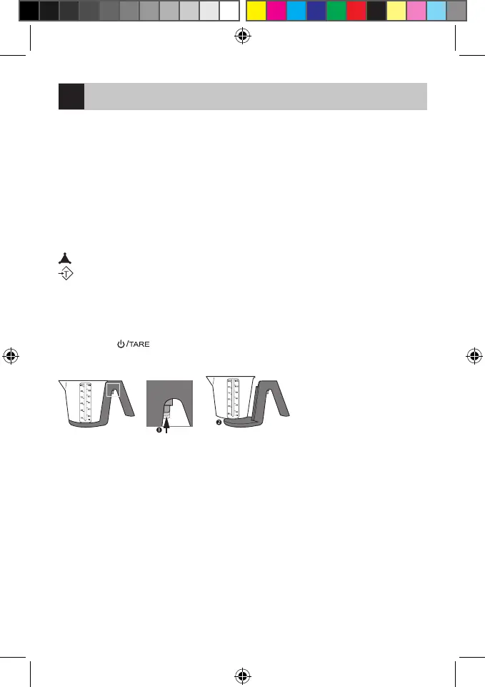 2. Înaintea pornirii aşezaţi pe cântar vasul de bucătărie.