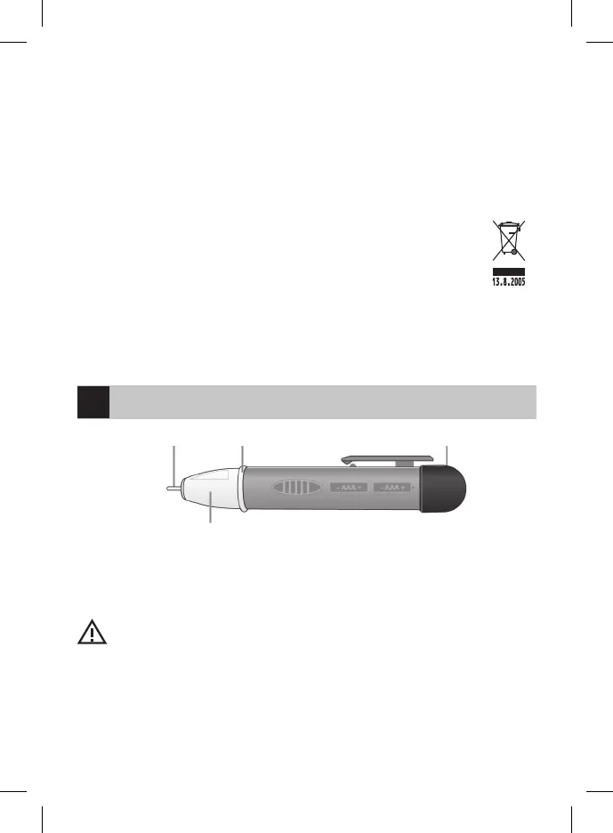 • La măsurarea tensiunii ţineţi detectorul în spatele denivelării protectoare, care împiedică contactul