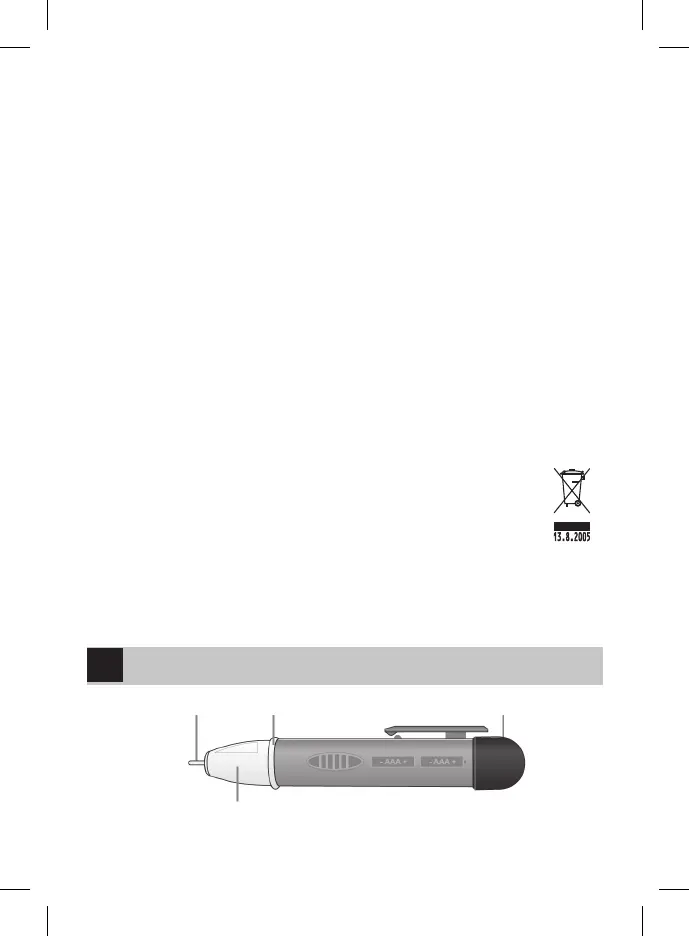 • Amennyiben az ellenőrző hegy sérült vagy a detektor nem működik a használati utasítás szerint, ne