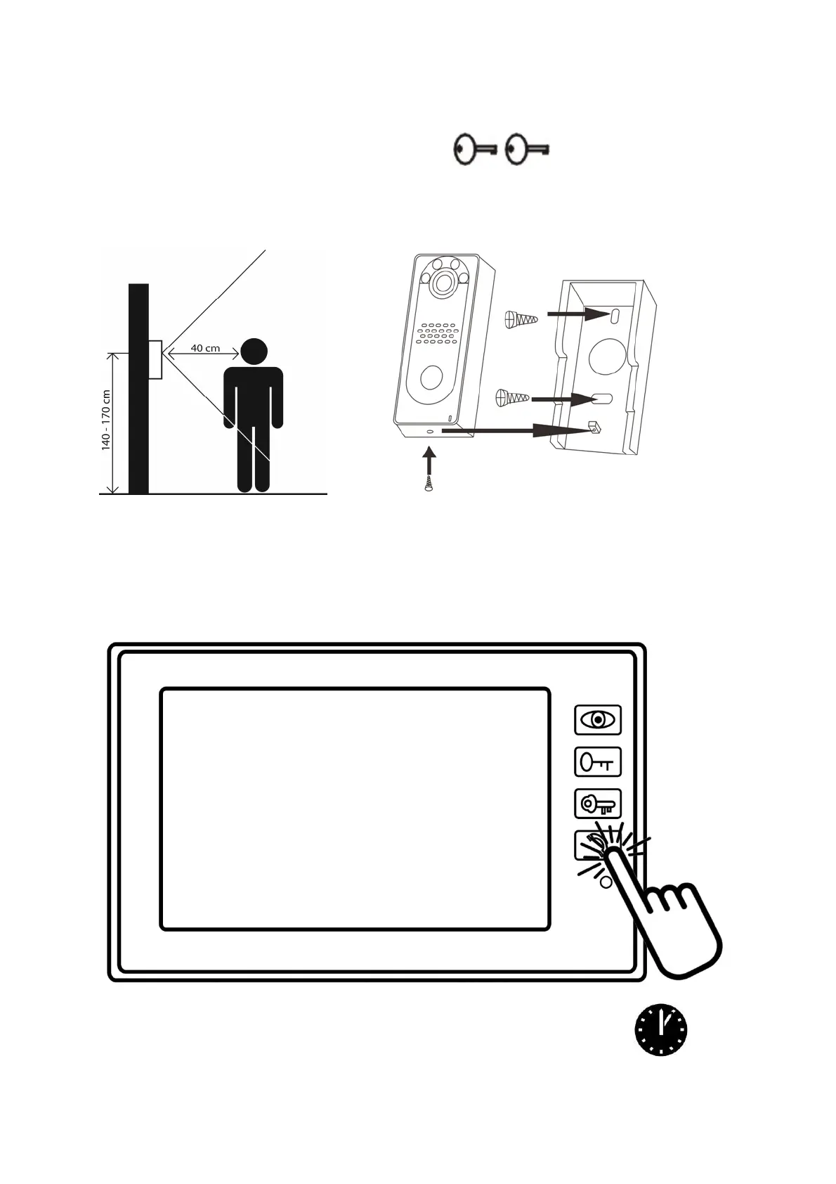 Za dovod napajanja v vratno el. ključavnico in odprtje vrat pritisnite tipko