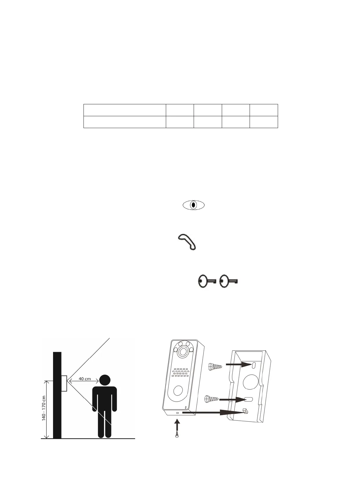 Video door phone system uses 8 core cables. Maximal distances between camera unit and monitor with