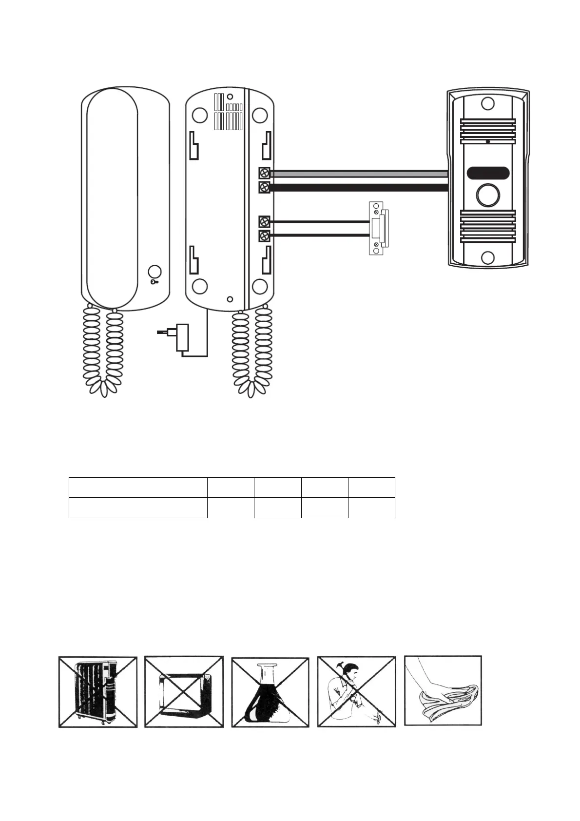 Systém videovrátnika používa tienený 2 žilový kábel. Približné maximálne vzdialenosti medzi kamerou a
