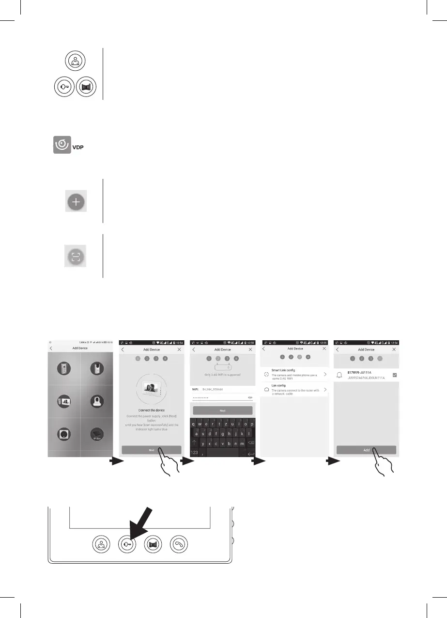 b) zvolení správného modelu připojovaného zařízení dle obrázku (monitor s kamerovou jednotkou) zadejte přístupové údaje