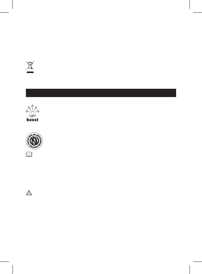 • Ne dobja a lámpát vagy az akkumulátort tűzbe, ne szerelje szét, és ne próbálja rövidre zárni!
