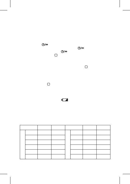Stiskněte tlačítko , začne blikat číslo dne (1 – pondělí až 7 – neděle).