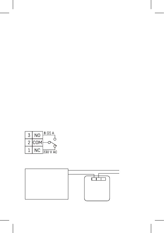 Vezalna napetostna shema termostata P5607 na kotel z izhodom „NO“: