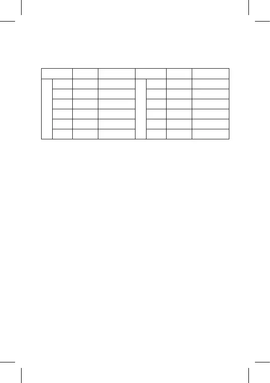 Tablica unaprijed postavljenih programa (6 promjena temperature na