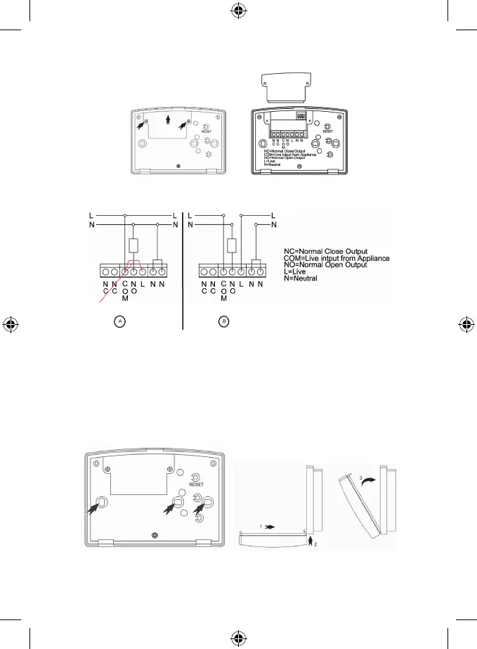 Înlăturați în prealabil puntea de cablu preinstalată între contactele COM și L !