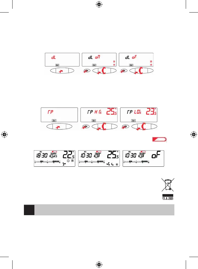 It is possible to do the thermostat’s temperature calibration in the range of -2.5 (L) to +2.5°C (H).