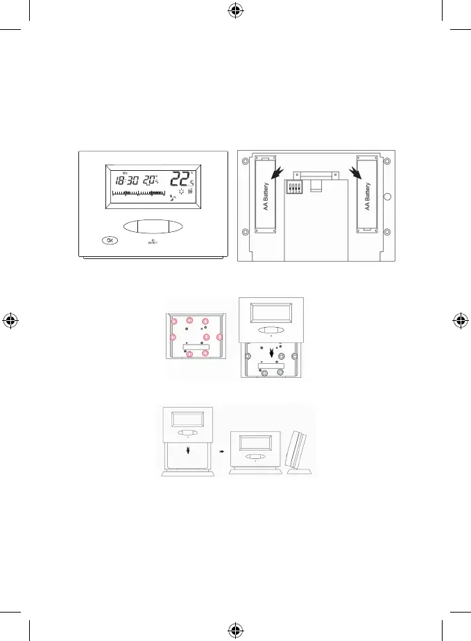 Pirms uzstādīšanas ievietojiet blokā divas 1,5 V AA baterijas.
