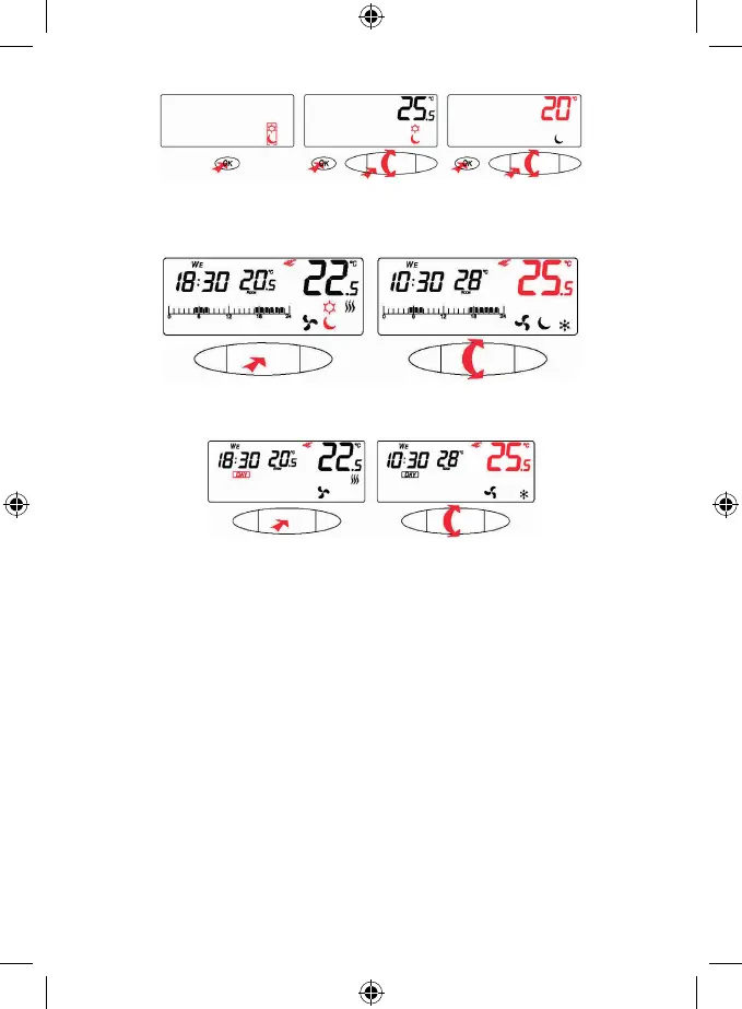 Lai veiktu nākamo (dienas/nakts) temperatūras maiņu, vēlreiz nospiediet ritenīti.