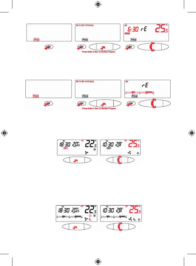 Lai pārbaudītu iestatījumu četru periodu dienas programmai, ar ritenīti izvēlieties ikonu “PROG” un nospiediet “OK”.