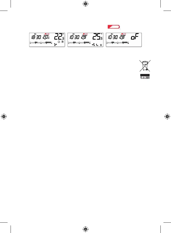 Ja termostata bateriju enerģijas līmenis ir zems, displejā sāk mirgot simbols