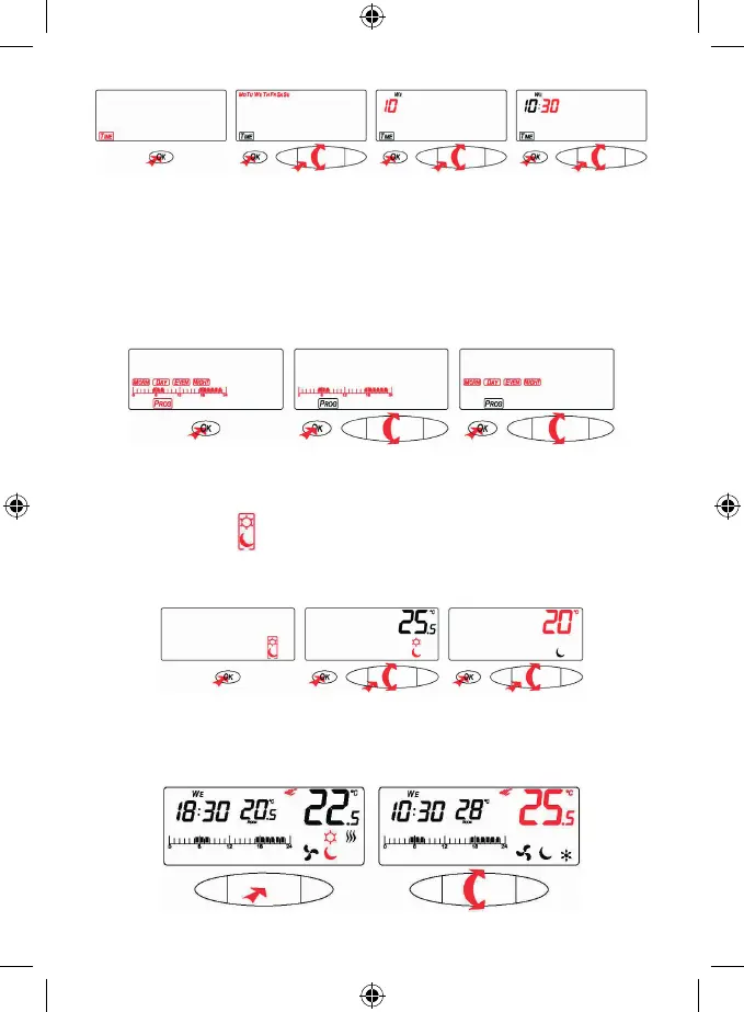 Pokrętłem wybieramy ikonę PROG ( z rysunkiem osi czasu 0 – 24 godzin / 4 przedziały czasu: MORN – DAY – EVEN