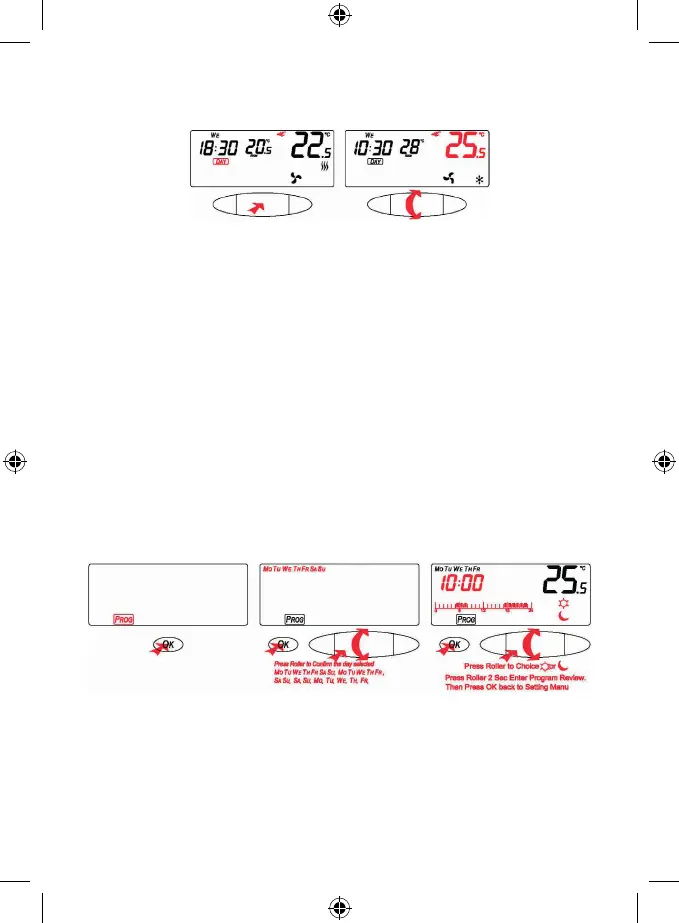 Do kontroli ustawionym 24 godzinnym programie dobowym pokrętłem wybieramy ikonę PROG i naciskamy OK.