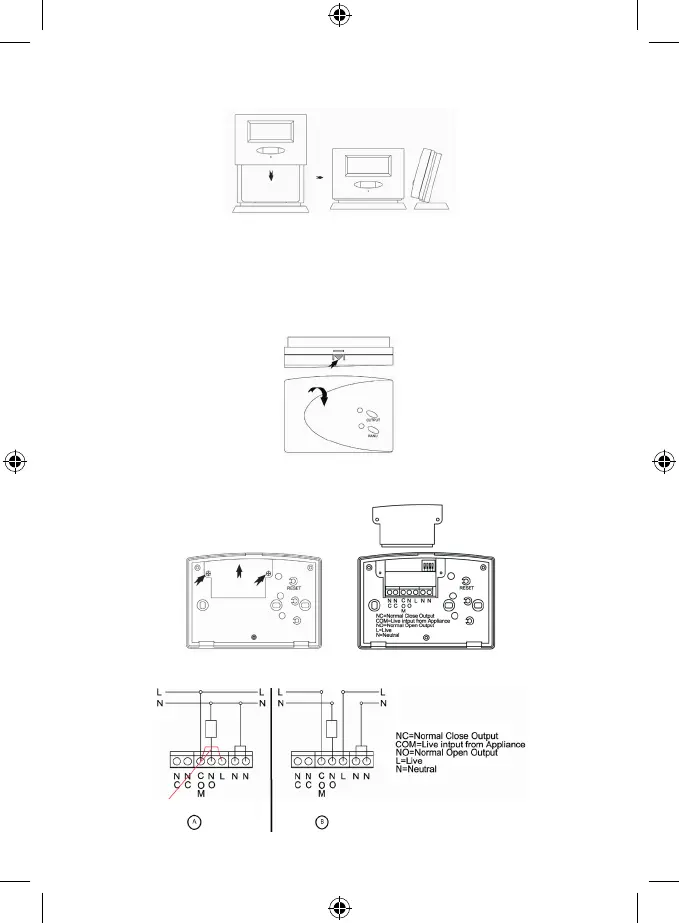 A csatlakozó vezetékek bekötéséhez a hátlapon csavarja ki a rajzon nyíllal jelzett két csavart, csúsztassa a hátlapot