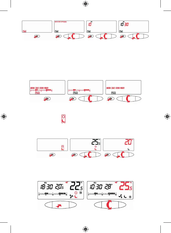 Day (comfort) / Night (cost-saving) or by the thumb-wheel you change the temperature to the desired level without