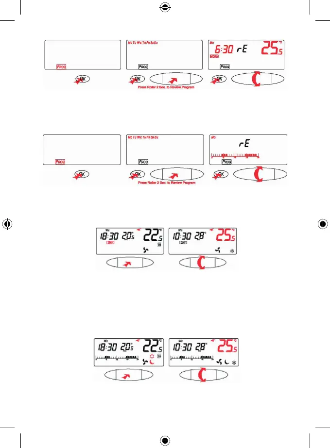 Za kontrolu postavki dnevnog programa sa 4 doba dana valjčićem odaberite ikonu PROG i pritisnite OK.