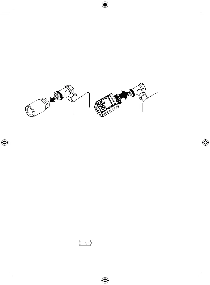 2. A felszerelés előtt helyezze be a szárazelemeket a termosztatikus szelepbe. Lazítsa meg a radiátor szelepén