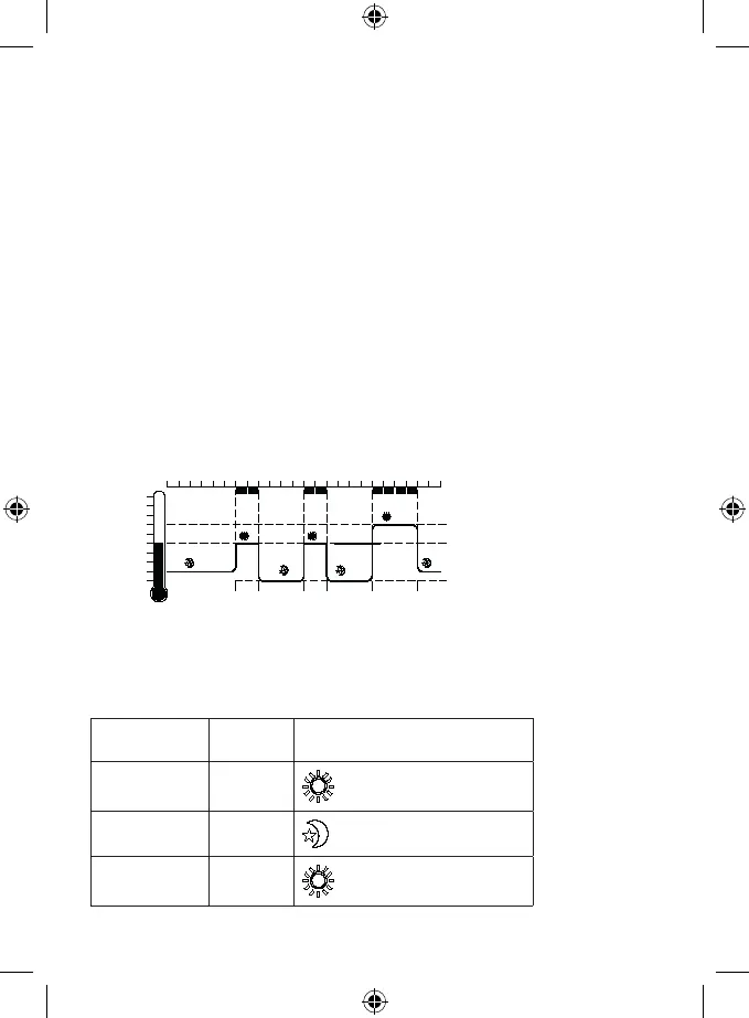 • Vienā dienā/dienu grupā kopā ir iespējams iestatīt sešas temperatūras izmaiņas (septiņas temperatūras).