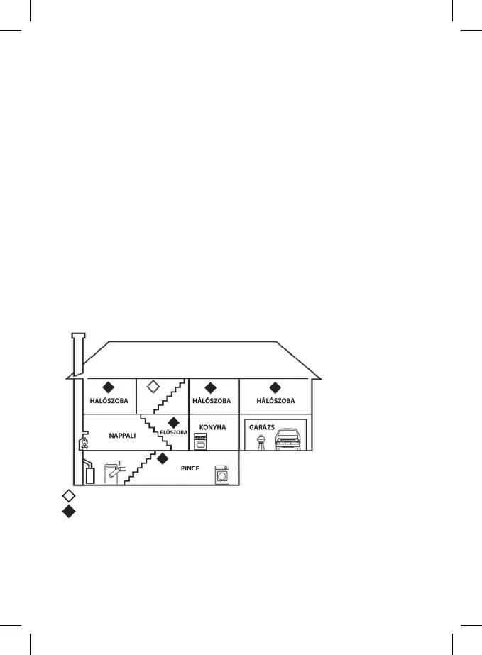 Amennyiben csak egy riasztókészüléket telepít, helyezze a hálószoba közelébe (ne az alagsorba stb.)!