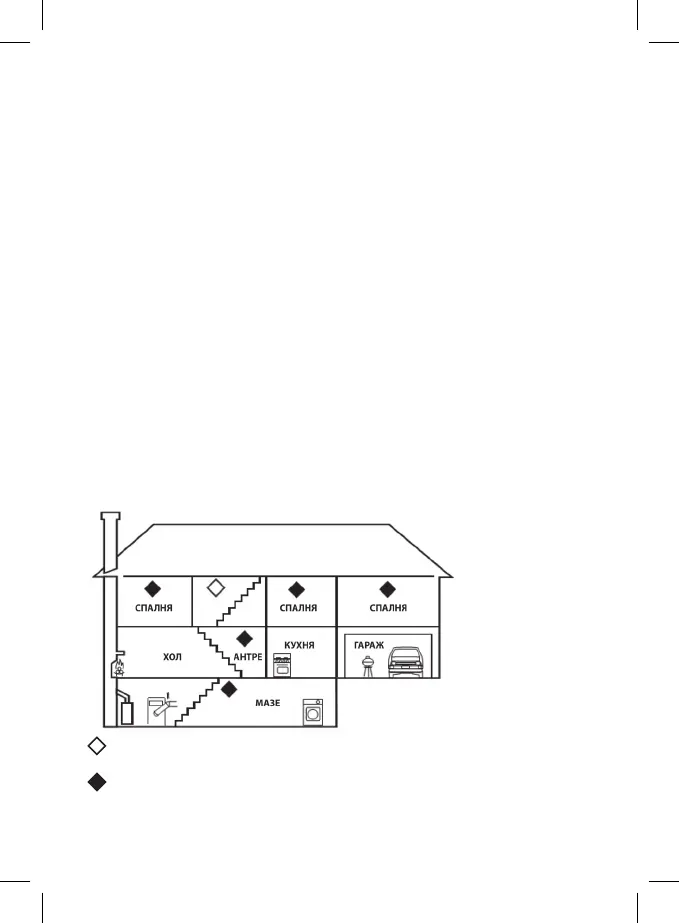 Ако монтирате само един сигнализатор, разположете го близо до спалнята (не в мазата, сутерена и пр.).