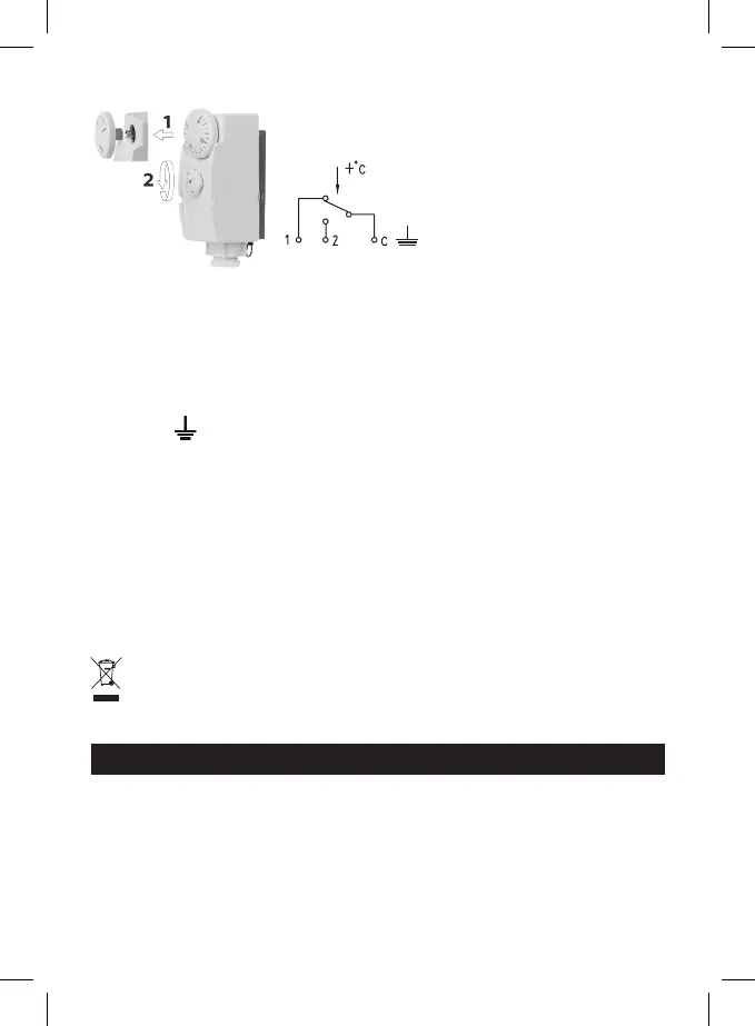 1. Ouvrir le thermostat en retirant le cadran (1) et en desserrant la grande vis en plastique (2).