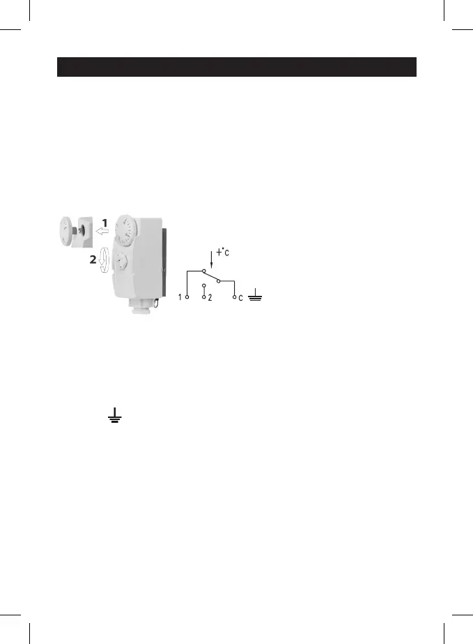 1. Para abrir el termostato, retire la ruedecilla (1) y aoje el tornillo de plástico (2).
